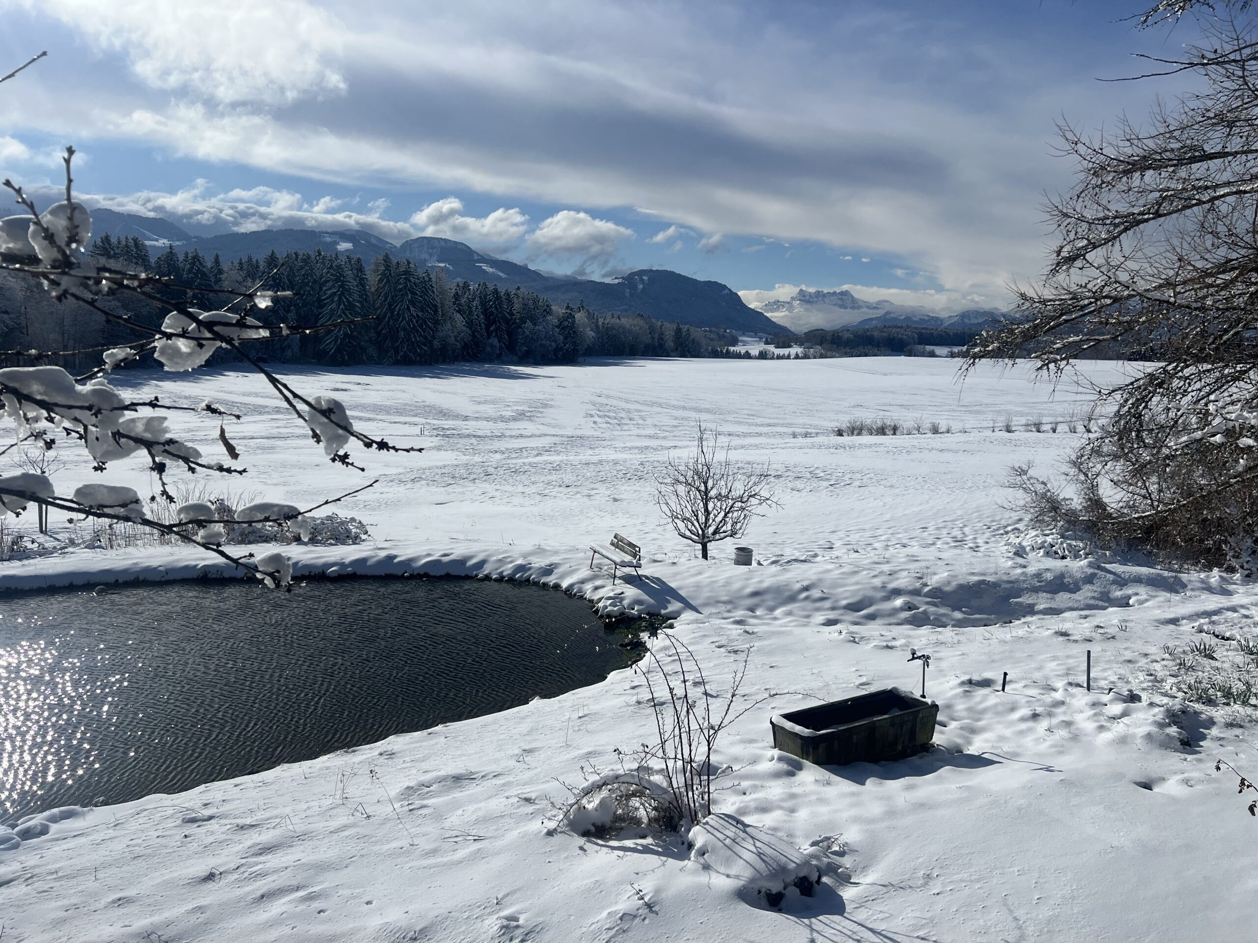 Hier (15 mars), neige jusqu’en plaine. Nette baisse des températures aussi. La bise souffle, du coup moins de mousses visibles.